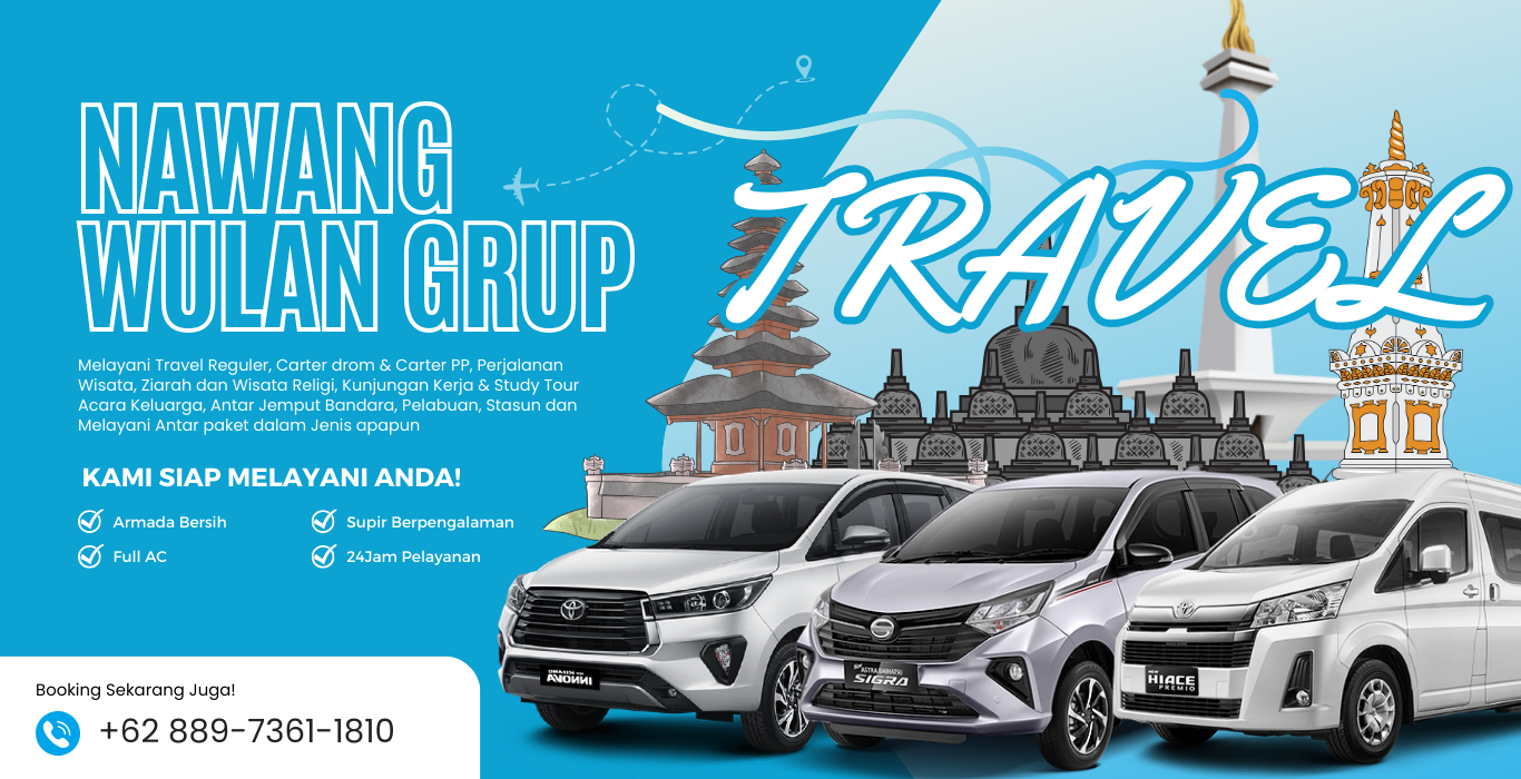 Nawang Wulan Grup merupakan perusahaan yang bergerak dalam bidang penyedia layanan jasa travel and tour antar kota hingga antar provinsi. Anda akan diantarkan langsung oleh driver kami yang sudah berpengalaman dengan beberapa pilihan armada yang bisa disesuaikan dengan kebutuhan, di antaranya Avanza, Mobilio, Innova, Hiace & ELF.